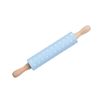 Világosék pöttyös szilikon sodrófa fa nyéllel 38 cm