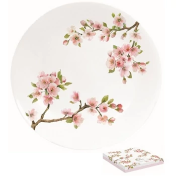 Porcelán desszertes tányér cseresznyevirággal 19 cm díszdobozban