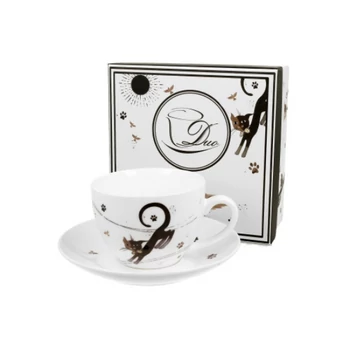 Porcelán fekete macskás csésze + alj 250 ml díszdobozban