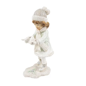 Kislány figura madarakkal fehér-ezüst 10 x 7 x 19 cm