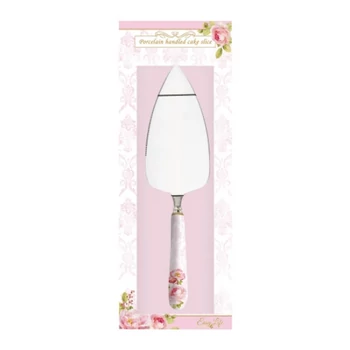 Rozsdamentes sütemény lapát porcelán nyéllel rózsaszínű rózsával