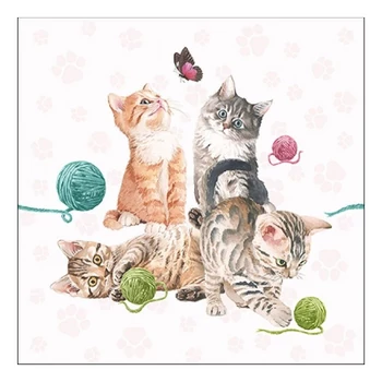Papírszalvéta gombolyaggal játszó cicusok 20 db-os 33 x 33 cm