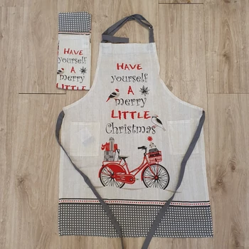 Karácsonyi kötény konyharuhával bicikli mintával szürke