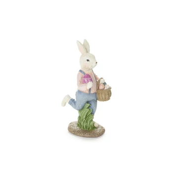 Nyuszifiú féllábon kosárral tojásokkal polyresin 7 x 17 cm