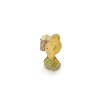 Kiscsirke kosarában színes tojásokkal resin 7.5 x 5 x 10 cm