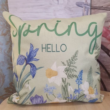 Díszpárnahuzat Spring HELLO zöld 44 x 44 cm