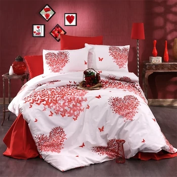 Pillangós - Szív mintás egyszemélyes pamut ágyneműhuzat 140 x 200 cm