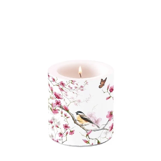 Madaras gyertya rózsaszín virágokkal 8 x 7,5 cm